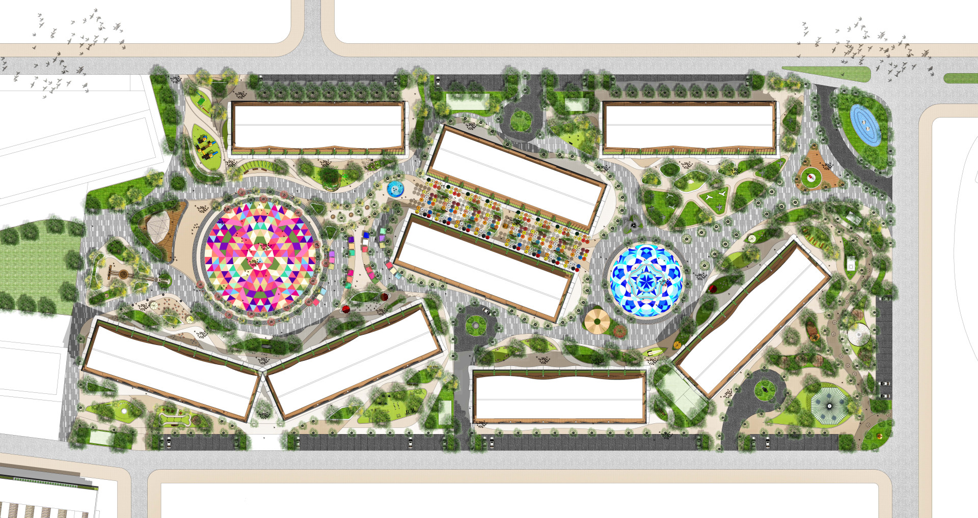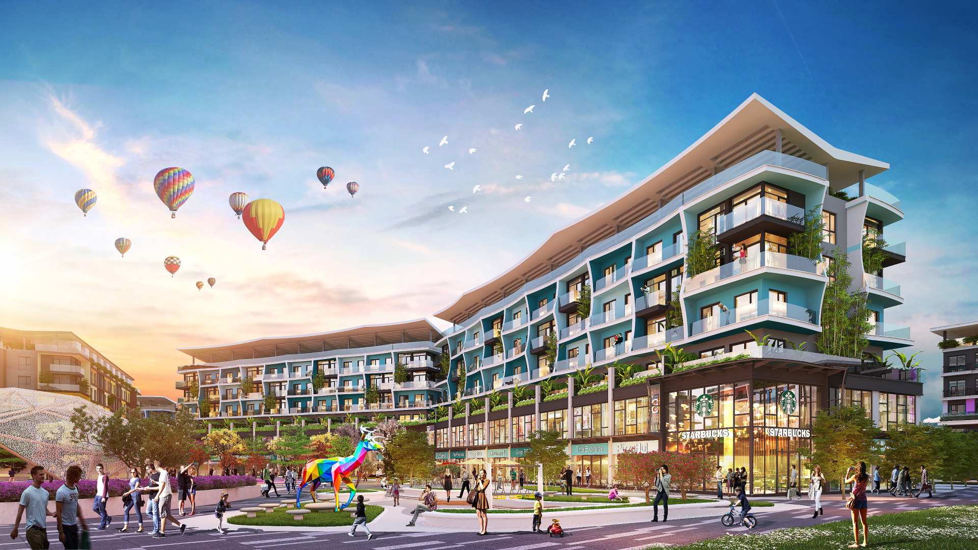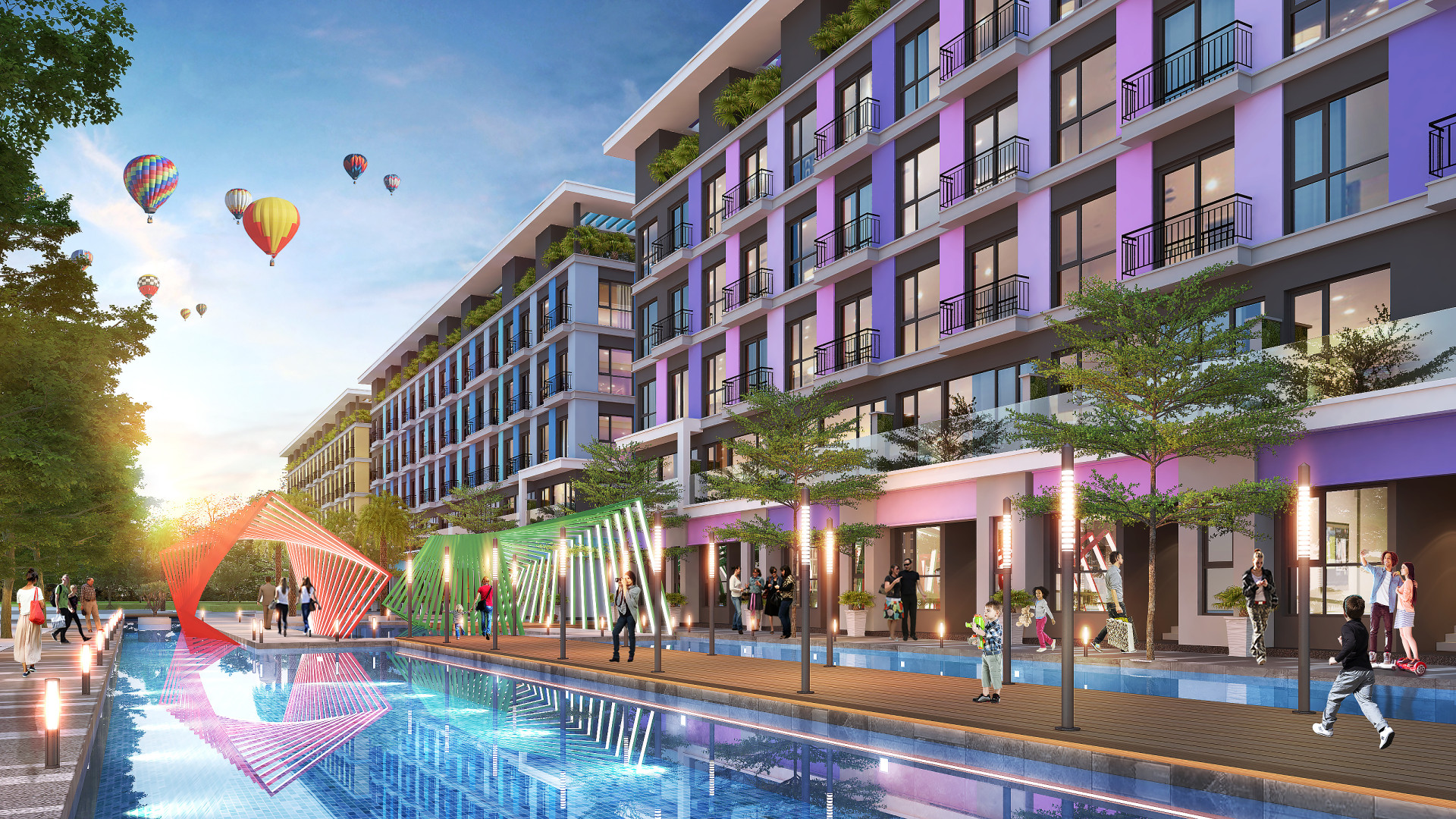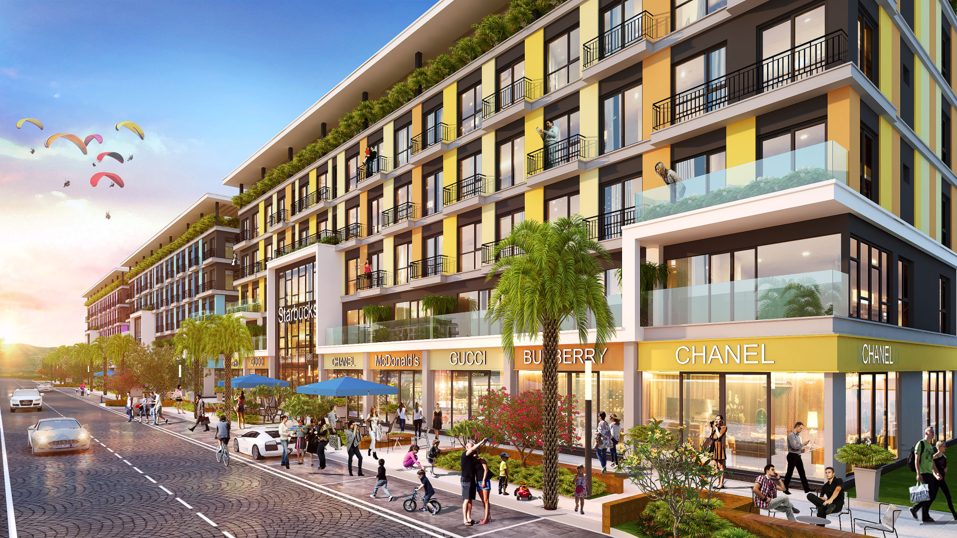 The project is comprised of 8 six-story shophouse blocks surrounding a central pedestrian spine. With the overall theme of “kaleidoscope” which reflects the vibrancy, colorfulness and youthfulness of the Cocobay development, the project is divided softly into 6 sub-zones: kaleidoscopic avenue, business, gourmet, kids, art, commerce – all is to bring about a ideal holistic experience of shopping – entertainment and business along the East coast beach.