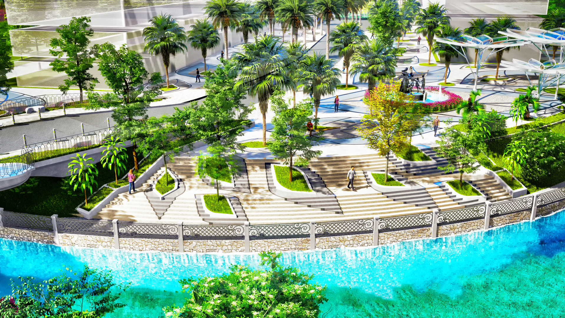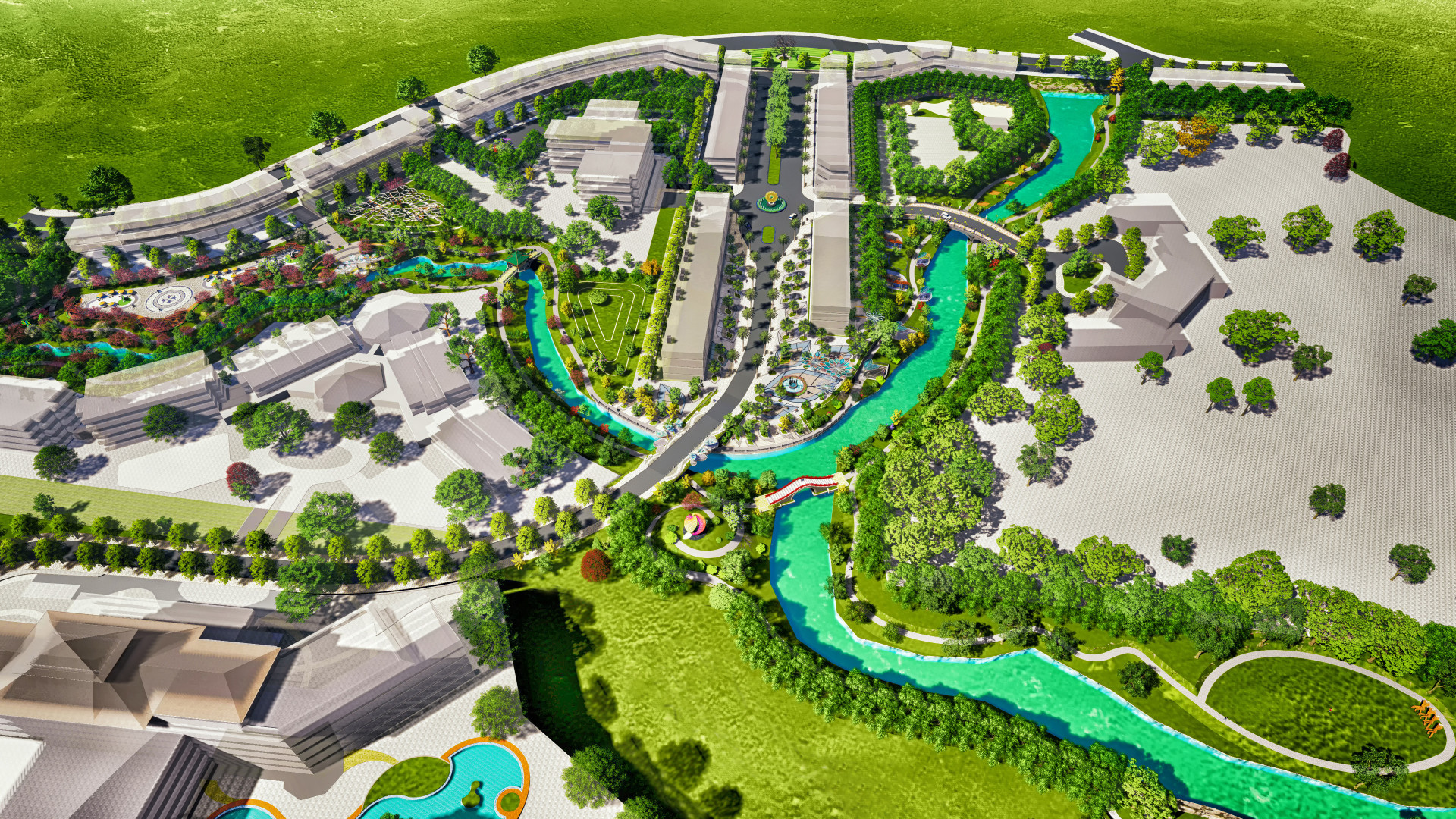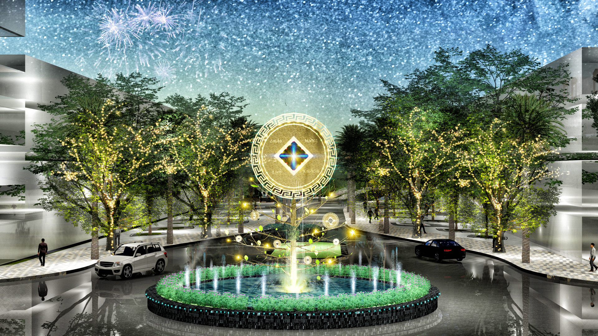 The landscape design is hugely inspired by the local attributes of mountain regions: paddy fields, tea tree hill, palm hill, Ban flower,…Moreover, as a complex of resort – wellbeing – healthcare geared towards midlife residents, the design also take inspiration from the longstanding longings of VNese about a all fulfilled life: Happiness – Wealth – Wellbeing – 3 notions that are also translated into actual symbol art along the main project’s axis. Therefore, the design aims to create multiple activities for cross-generation users, thus a ideal place not only for the old to revitalize but also for the family to get close together.