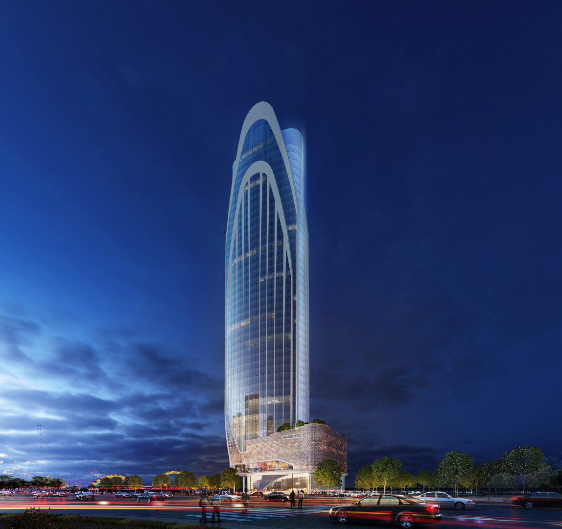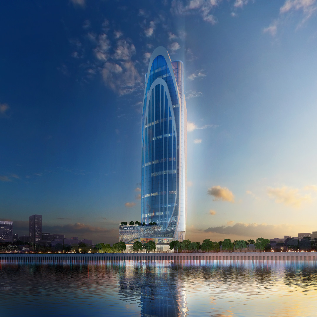 Nam Tri Hotel aims to be an impressive landmark at the special area close to Dragon bridge and Apec park, and Han River. The 42-story tower accommodates 300 hotel units and 60 service apartments along with many amenities. Inspired and interpreted in modern ways from the curvature of local Champa architecture relic and from the embracing hand signature image found in Buddha religion, the project convey the message of friendliness, serenity, harmony, yet boasts an unmistakable appearance.