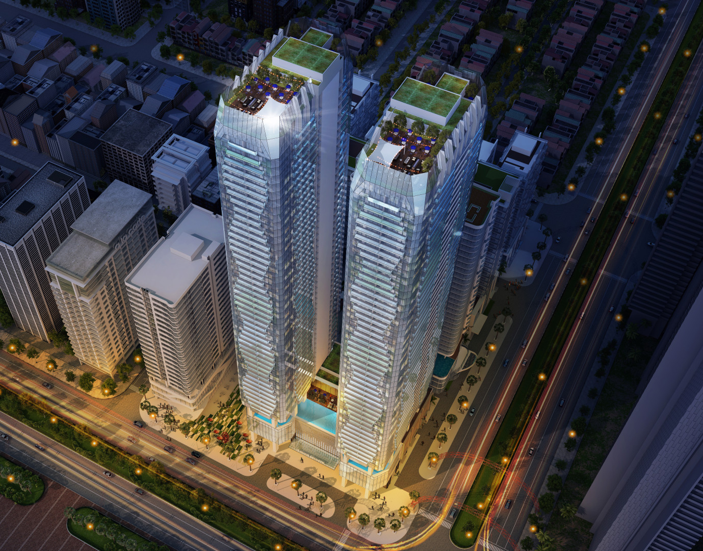 + Size: Site area: 0.5ha. 50 fl twin towers. 1472 condotel unit