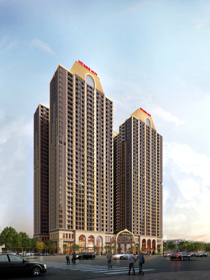 Dự án gồm 2 tháp đối xứng nhau mặt bằng chữ H (tượng trưng cho tên của CĐT Hoàng Huy), đồng thời mặt bằng này cho phép tối ưu hóa không gian lô đất và view nhìn ra xung quanh cho các căn hộ. Phong cách thiết kế Tân cổ điển, với màu sắc trầm điểm xuyết bởi ánh vàng đồng lấp lánh, tạo nên hình ảnh sang trọng và khác biệt.