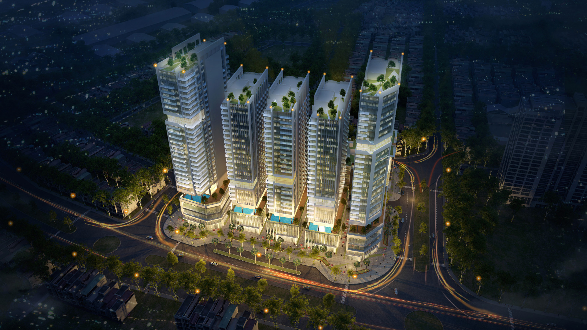 + Quy mô: Diện tích đất: 0.9ha, 5 tháp cao 26-30 tầng, 31 Shophouse 6-9 tầng