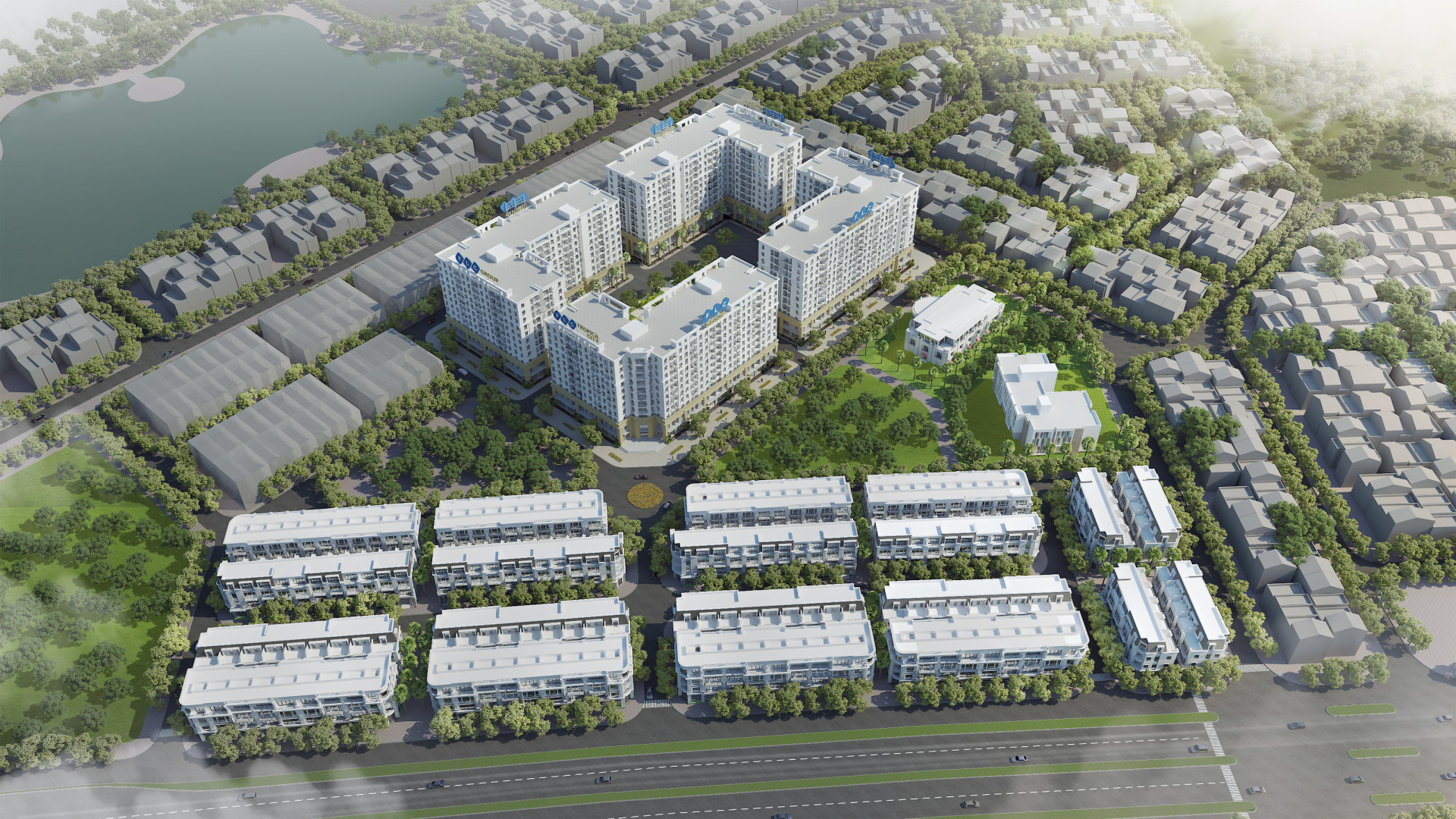 Với một dự án nhà ở thương mại dành cho đối tượng thu nhập trung bình, đồng thời đáp ứng nhu cầu thẩm mỹ kiến trúc ở địa phương (tỉnh Quảng Ninh), tư vấn đã đề xuất ý tưởng giải pháp mang tính hiệu quả về mặt bằng, kết cấu và kinh tế mà vẫn biểu hiện được phong cách tân cổ điển. Tổng mặt bằng gồm 4 tháp cao 11 tầng dạng tứ trụ quay vào sân trong tiện ích, với khối đế là shophouse và cửa hàng bao quanh mặt ngoài và hoàn toàn đỗ xe nổi.
