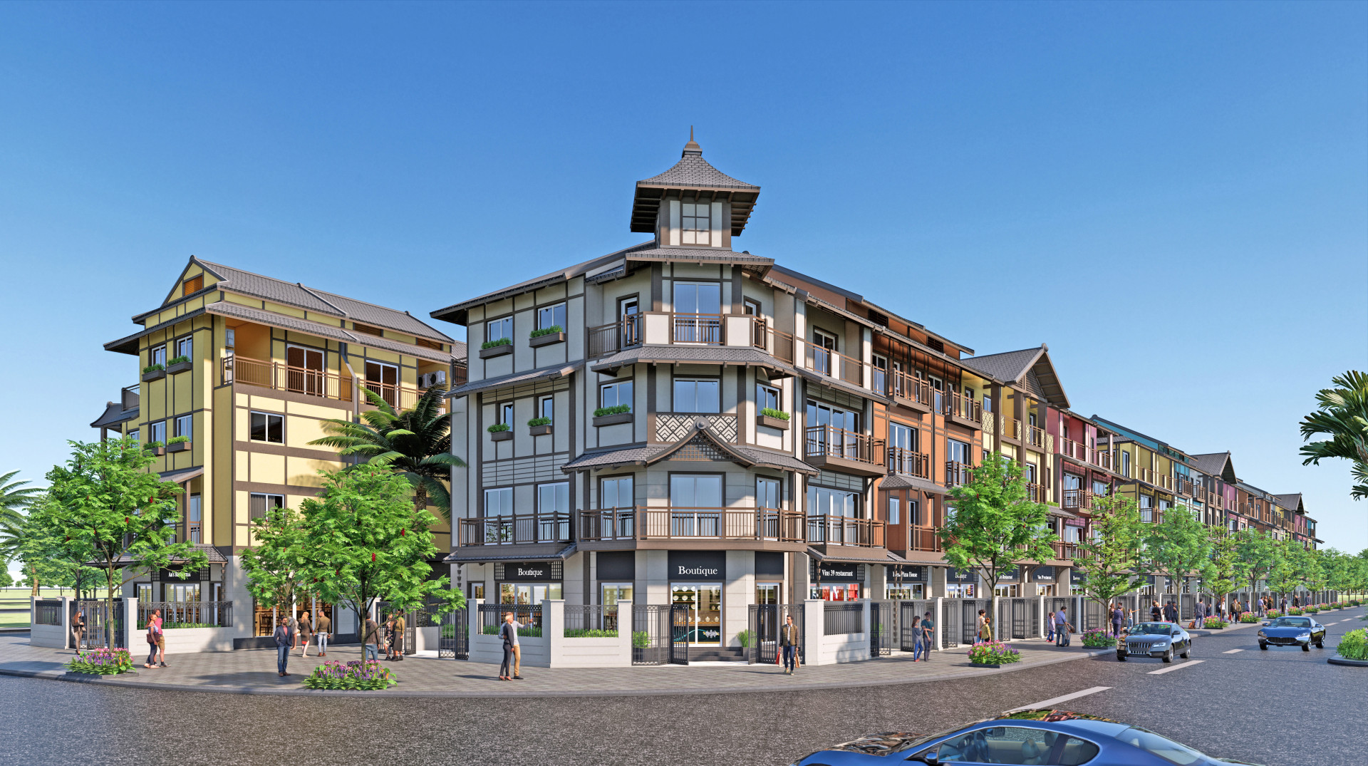 Dự án được chia thành 3 phân khu với các phong cách: Đông Dương, Tân cổ điển Pháp và Nhật bản đương đại, tạo nên sự phong phú về sản phầm và sinh động trong không gian tuyến phố.